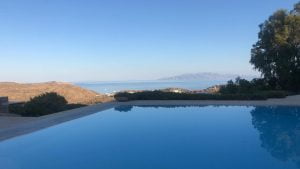 The house is built on two levels on a hillside. The top level has direct access to the swimming pool terrace and contains the living and dining areas, kitchen and three en-suite, double bedrooms. The lower level has access to a separate shaded terrace, and contains a second kitchen and living room, and 4 bedrooms (2 doubles, two twins). The floors are autonomous but are connected via a staircase. Outside the garden offers great ocean views but also has sheltered areas near the pool in case of wind.