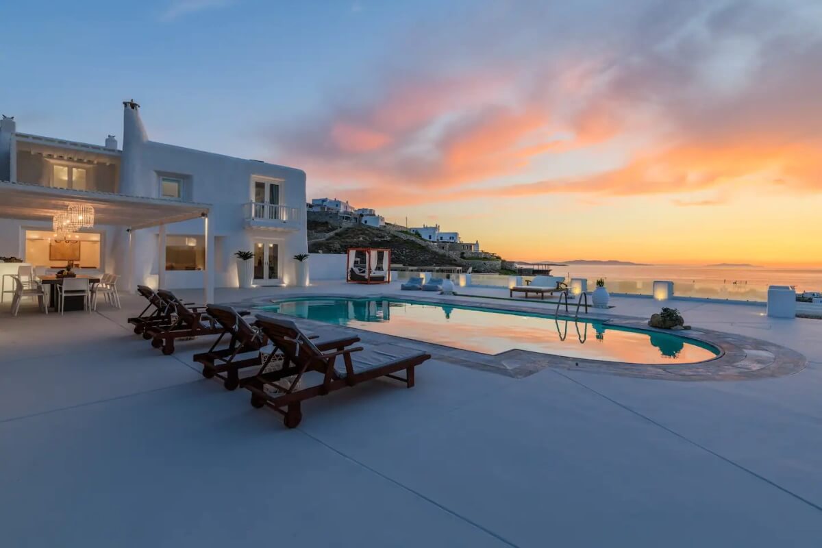 Sunset Deluxe Villa is an amazing villa, located in Ornos, at the Kanalia area, that was newly renovated, offering amazing and unobstructed views of the sea, Mykonos Town and the famous Cycladic sunset.